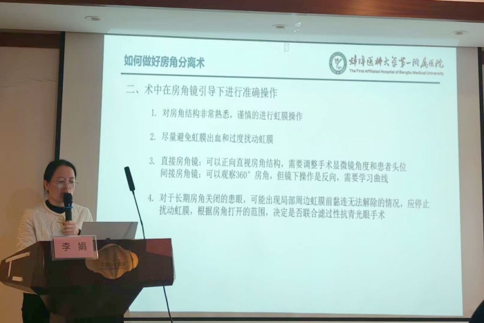 本次会议特别邀请了安徽医科大学第二附属医院蒋正轩教授、安徽医科大学第一附属医院刘伦教授、蚌埠医科大学第一附属医院李娟教授等省内知名专家分别就玻璃体视网膜手术操作规范、孔源性视网膜脱离的相关探讨、房角分离与闭角型青光眼等内容结合实际案例开展授课。眼科同仁围绕眼科疾病质量控制与风险防范这一核心议题分享了主题病例,展开热烈深入的讨论,分享了宝贵经验和先进做法。现场气氛学术浓厚,达到了相互学习、共同提高的目的。