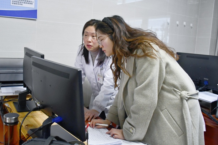 专家组一行深入呼吸内科门诊,实地查看我院急性呼吸道传染病综合监测工作的组织实施情况,并通过查阅医院HIS系统,详细了解相关监测数据的采集、上报和管理流程。重点调研了国家传染病智能监测预警前置软件的运行实效,围绕数据的完整性、及时性和稳定性等方面进行全面评估,并就系统实际使用中遇到的难点和问题进行交流。