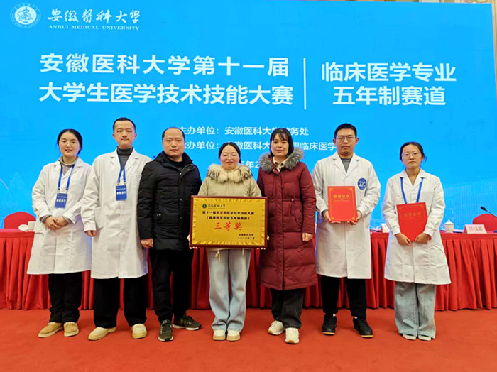 News2月7日,由安徽医科大学主办、安徽医科大学附属巢湖医院承办的安徽医科大学第十一届大学生医学技术技能大赛临床专业五年制竞赛在巢湖市举行。来自全国17家单位的22支代表队88名选手参加本次比赛,我院代表队荣获团体三等奖,其中安徽医科大学一临床的袁礼文同学获个人单项奖,也是省内地级市医院中唯一个人单项奖。