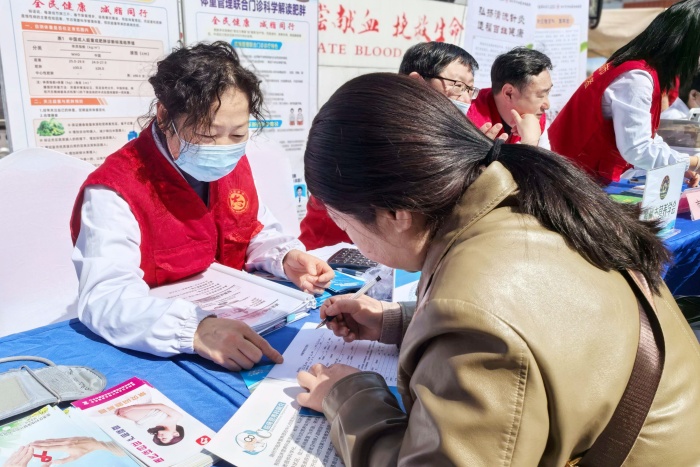 医务人员现场为市民免费测量血压,发放健康宣传手册;针对血压异常人群,讲解饮食调理、日常作息注意事项,叮嘱定期监测、及时干预,普及“早预防、早发现、早诊断、早治疗”的健康理念。