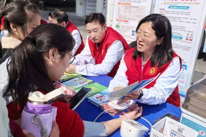 医务人员现场为市民免费测量血压,发放健康宣传手册;针对血压异常人群,讲解饮食调理、日常作息注意事项,叮嘱定期监测、及时干预,普及“早预防、早发现、早诊断、早治疗”的健康理念。