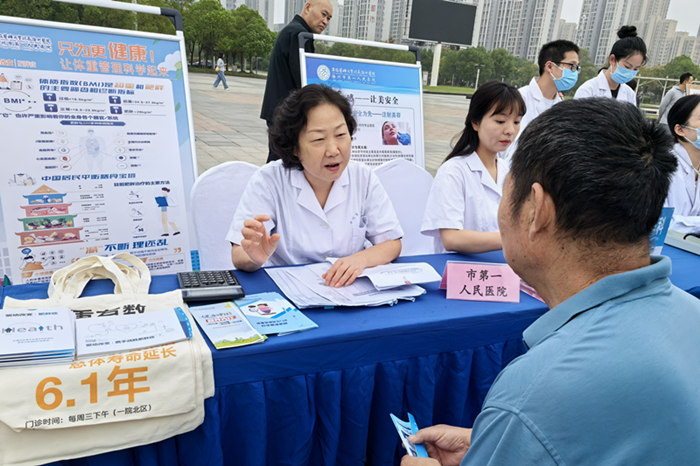 10月11日下午,我院5名医务人员参加了由安徽省卫健委、安徽日报报业集团主办,安徽省卫健宣传教育中心、安徽商报和滁州市卫健委承办的“科学减重 快乐生活 —— 体重管理年”以及“医美安全行”健康社区行活动。活动在滁州市初心广场举办,为滁州市民带来了一场集健康咨询、专业诊疗、安全科普于一体的“健康盛宴”。